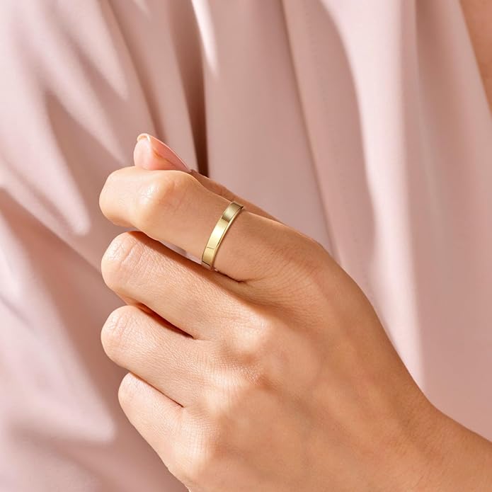 - Design: 2mm 4mm 6mm wedding rings for men and women. Gold plated color, high polish finish, classic flat design, beveled edges, comfortable dainty simple ring