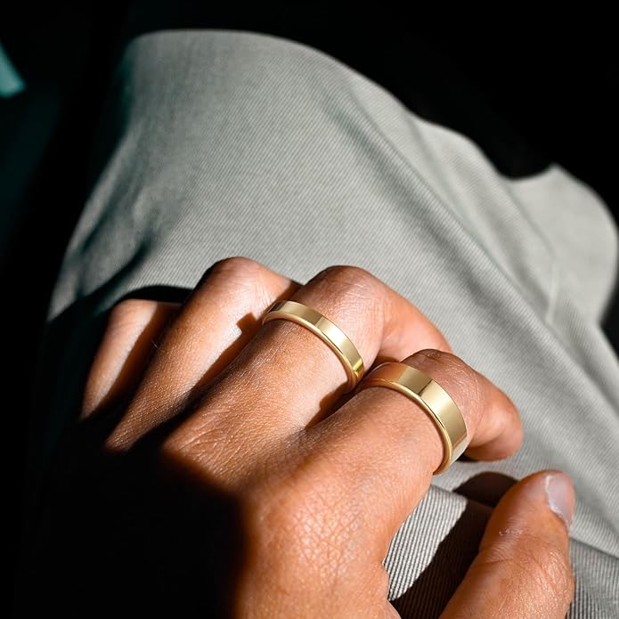 - Design: 2mm 4mm 6mm wedding rings for men and women. Gold plated color, high polish finish, classic flat design, beveled edges, comfortable dainty simple ring