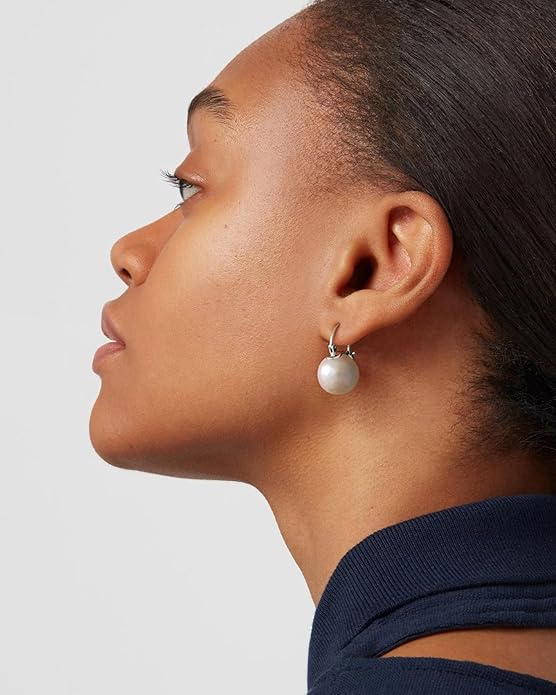 - 4.Material: Plated in white gold for endless shine and durability, the silver huggie hoop earrings are an understated sophistication. The 14mm white pearl earrings, derived from high-quality shell pearl, ensures not only lasting durability but also a luminescent sheen and weighty quality.