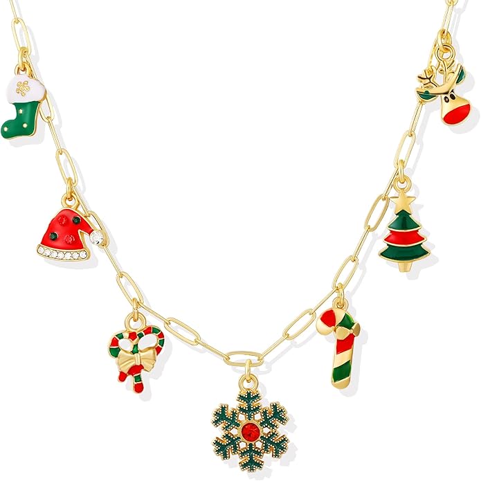 - Christmas Necklaces: Featuring pendants that include festive elements such as Christmas trees, bells, snowmen, moose, Christmas stockings, and more, our necklaces are perfect Christmas accessories that will make you gorgeous and glamorous at holiday parties and family gatherings.