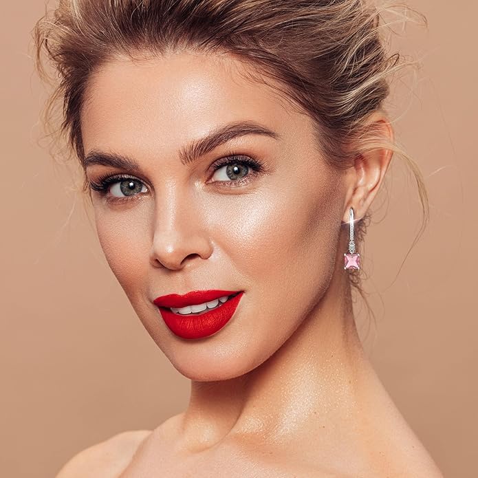 - FORMAL WEDDING EARRINGS FOR WOMEN: Trendy princess cut dangle earrings Clear, Black, Light pink, and blue sapphire gemstone earrings, Delightfully set into highly polished silver. Fish hook ear wires are comfortable, easy to use, and have a timeless style
