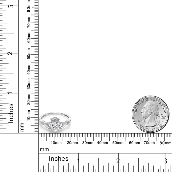 Gem Stone King 10K White Gold 6MM Heart Shape Gemstone Birthstone and White Diamond Irish Celtic Claddagh Engagement Ring | Gold Ring For Women | Available In Size 5, 6, 7, 8, 9