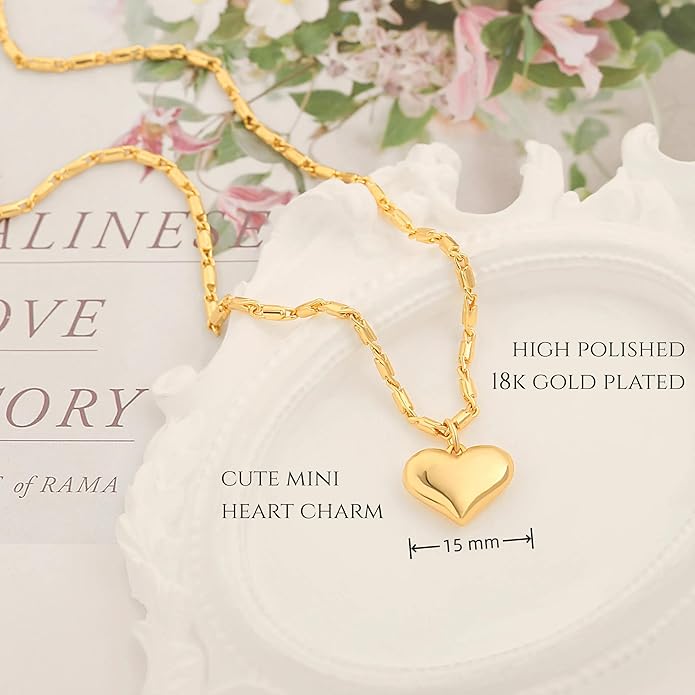 - 1. Style: This dainty gold necklace for women features a glossy, polished tiny heart pendant that exudes elegance and warmth. Its petite design makes the heart pendant necklace perfect for minimalist and romantic looks, ideal for women who love cute necklaces.