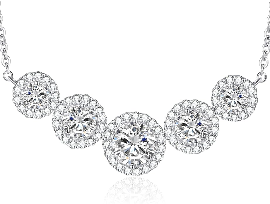 - 【Dazzling Smile Curve with Halo Setting】 This moissanite necklace is composed of five exquisite daisy flowers representing purity, friendship, hope, happiness, and love. The back of the necklaces for women is engraved with the words "I LOVE YOU", which can express your deep love for your loved ones, and let her know how much you love her. This dainty necklace consists of 5 moissanite stones (1x2.0ct center stone,2x0.8ct,2x0.5ct), Total 4.6ct.