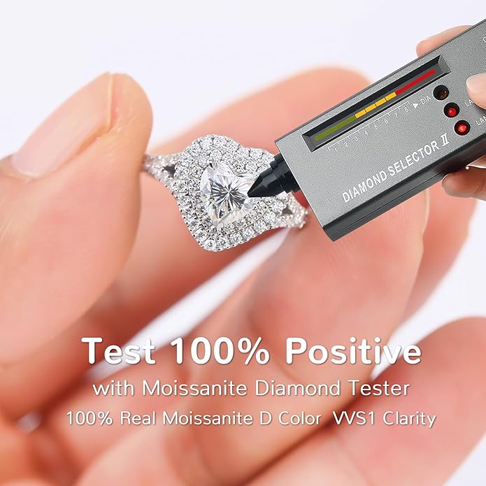 - 【Moissanite】:This moissanite heart shaped engagement ring is made of high-quality D color VVS1 clarity moissanite, comes with a GRA certificate.Moissanite is a valuable and aesthetically pleasing gemstone that is often used in jewelry and other collectibles.The hardness is 9.25, and the refractive index is 2.65. It has a better fire effect than diamond, and its light dispersion and reflection effect is better too