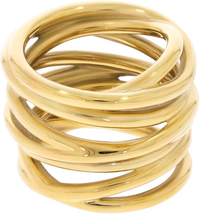 - RIGHT LEVEL OF SOPHISTICATION: Enjoy these stainless steel stackable rings featuring a 14K golden color PVD coating—the same material as high-end watches. Lightweight and featherlike, these rings are the perfect choice for those who want something minimalistic yet eye-catching to wear daily.