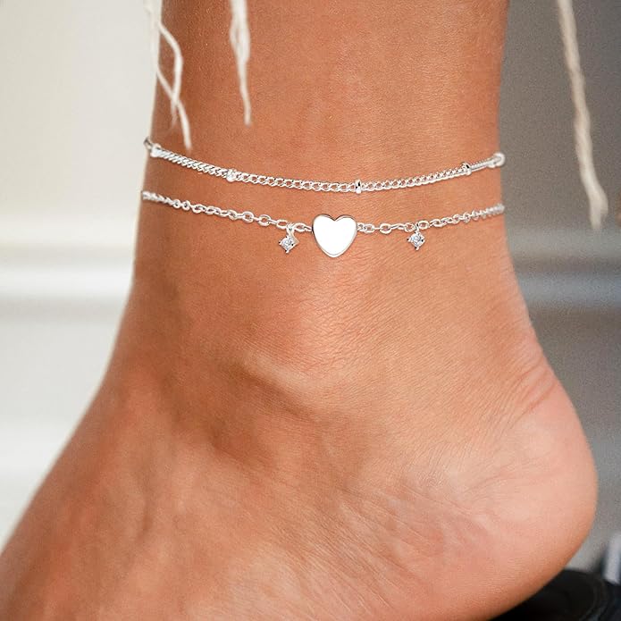 - LAYERED ANKLETS FOR YOU:this ankle bracelet set contains 2 different styles of fashion anklets anklets,including a cz heart chain and a satellite bead chain it all will be a good choice for you,anklets for women are suitable for wearing alone or stacking and can be matched to meet any occasions fashion needs