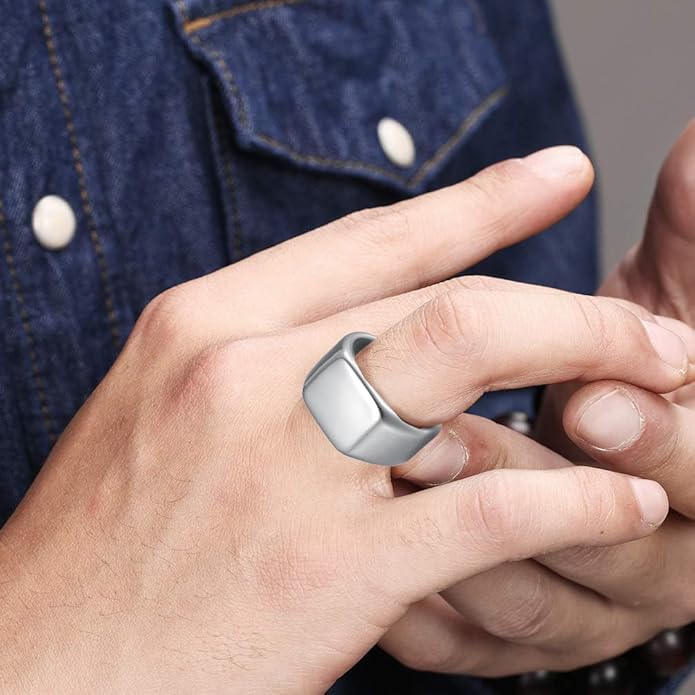 - Premium Quality Material: Rectangle signet rings with high polish and elegant simpleness. Made from top-grade corrosion-resistant, hypoallergenic titanium stainless steel, solid and durable