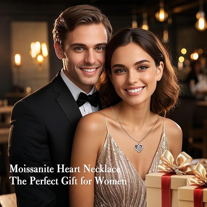 - UNIQUE HEART SHAPE DESIGN: The moissanite necklace for women is made in the shape of a heart as a creative idea, and set with lab created sparkling Moissanite for design, the heart is a symbol of expressing love, Moissaniterepresent eternal commitment, the combination of the two represents eternal love, expressing eternal love for wives, mothers, daughters, grandmothers, girlfriends, lovers and other eternal love. The back of the sterling silver necklace is engraved with 'I LOVE YOU' and the bottom of the bracelet is an exclusively designed heart, putting all your love for her into this necklace