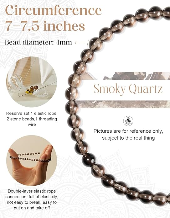 - 【Healing Bracelets】Smoky Quartz has a powerful grounding energy. It absorbs and transforms negative energy, especially in the face of challenge or change, and can help people maintain stability and balance in their lives and better achieve their goals.