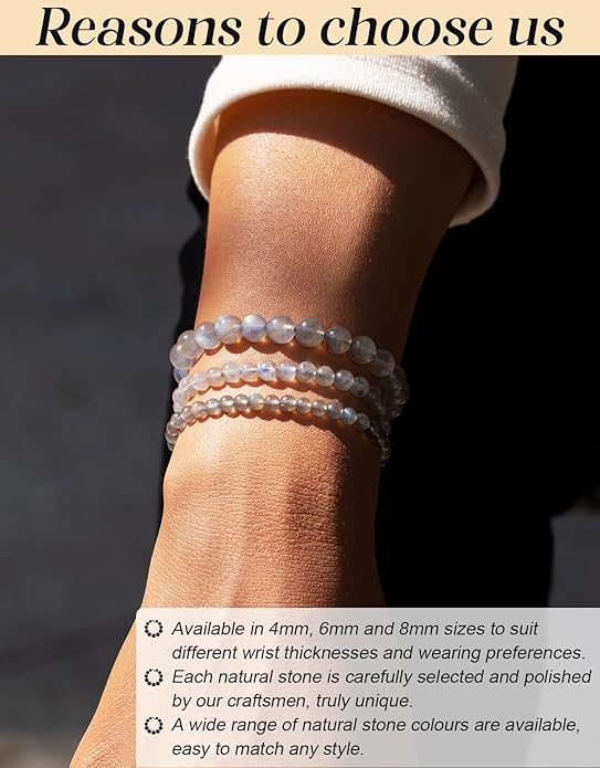 - 【Specification】You will receive a bracelet made of natural gemstones and a spare piece of beaded string, two pearls and a crystal rubber band.Whether you prefer a subtle, understated bracelet or a bold, eye-catching style, our crystal beads are available in three sizes (4/6/8mm) to suit every need.