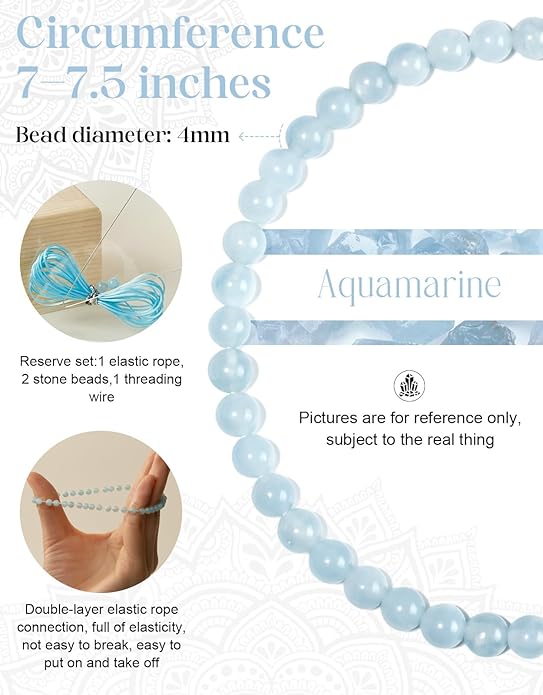 - 【Healing Bracelets】Aquamarine has the energy to balance emotions, helping to get rid of negative thought patterns and enhancing optimism and positivity. Associated with the Throat Chakra, it can help improve communication skills and promote sincere expression.