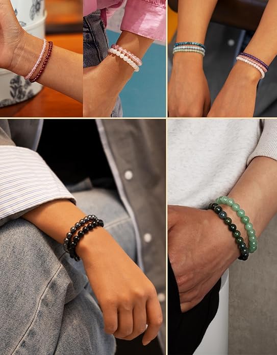 - 【Specification】You will receive a bracelet made of natural gemstones and a spare piece of beaded string, two pearls and a crystal rubber band.Whether you prefer a subtle, understated bracelet or a bold, eye-catching style, our crystal beads are available in three sizes (4/6/8mm) to suit every need.