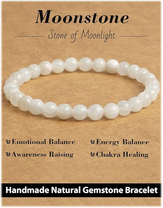 - 【Healing Bracelets】Moonstone can help with emotional balance and mental health. Known as the “Stone of Moonlight”, it activates the Third Eye Chakra, stimulating inner potential and creativity.