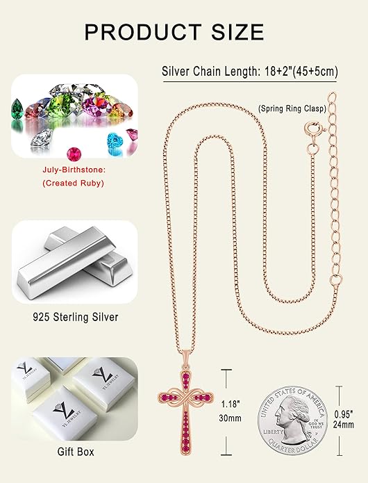 YL 925 Sterling Silver Cross Necklace for Women Halo Infinity Pendant Birthstone Jewelry for Mom