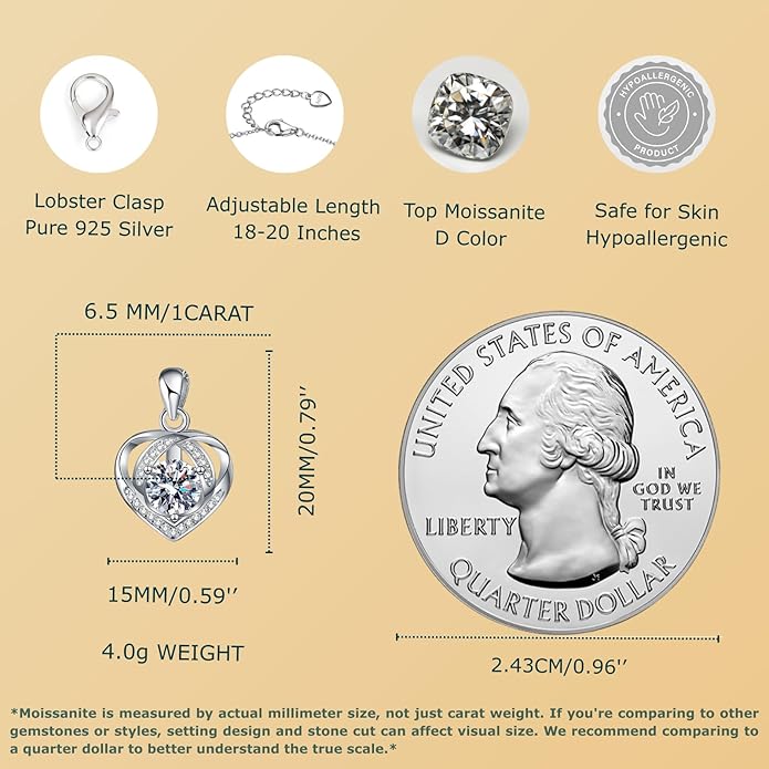 - 💖 Symbol of Timeless Love: Crafted in a graceful heart-shaped design, this moissanite pendant necklaces expresses eternal love and deep connection. Perfect love heart necklaces for women, ideal for anniversaries, birthdays, or just because. Make her heart smile with this dainty moissanite jewelry for girlfriend or wife.