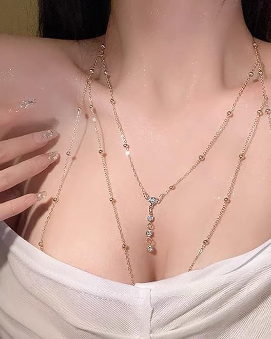 - [Feature]: Trendy gold body chain jewelry with necklace chain set, great for bra, top, Lingerie
