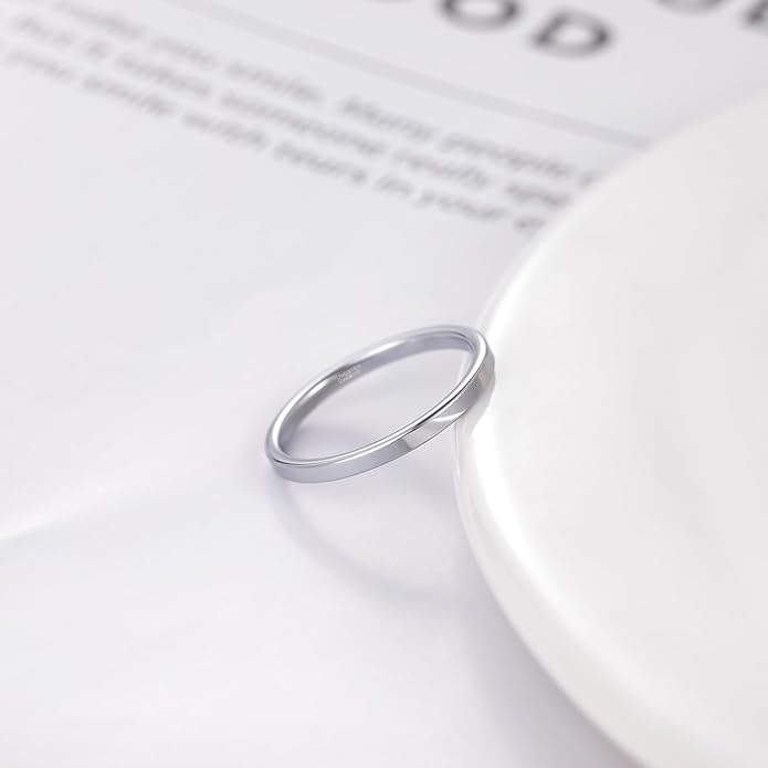 - Design: 2mm wedding rings for men and women. Silver plated color, high polish finish, classic flat design, beveled edges, comfortable dainty thin simple ring
