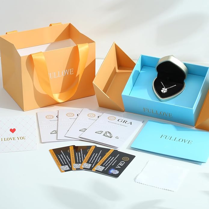 - PREMIUM STONES: Features four 0.5 carat heart-cut moissanite stones with D-color grade and VVS1 clarity for exceptional sparkle and brilliance