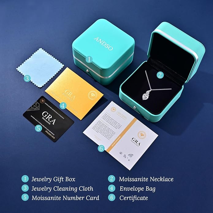 - 【Certified Moissanite】The heart necklaces for women features moissanite that comes with a certification of authenticity, which is traceable and with a unique code, ensuring their genuineness. The necklace measures 18 inches with an additional 2-inch extension for optimal comfort, and it features a lobster clasp for easy wearing