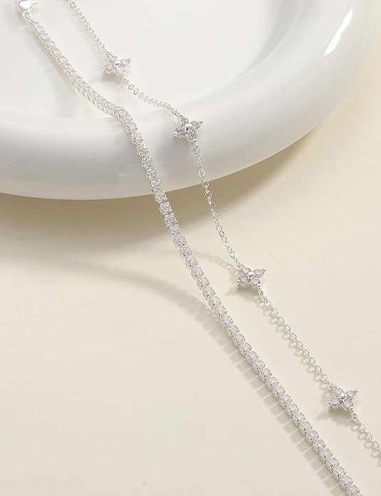 - GOLD ANKLE BRACELET FOR WOMEN: 1-3PCS 14k gold anklets set,including dainty layered dot chain/shimmering cz Station and tennis chain/Clover Station anklet /stunning butterfly anklet/love heart charm anklet. Perfect elegant piece for any fashion-forward woman,adding a touch of elegance to any jewelry collection