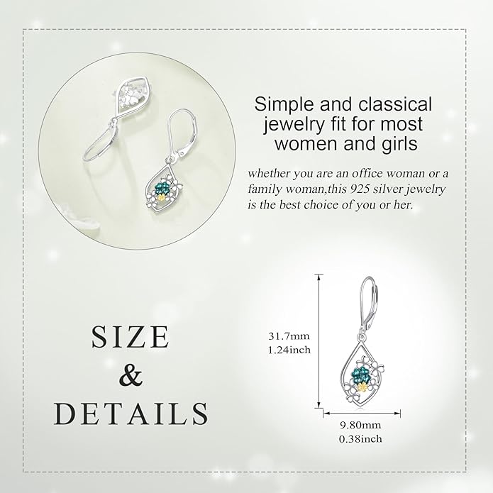 - ☘️【Material 】: 925 sterling silver shamrock earrings with the green cubic zirconia,hypoallergenic, tarnish resistant,nickel-free,lead-free,cadmium-free,suitable for long-term wear,especially sensitive skin women.