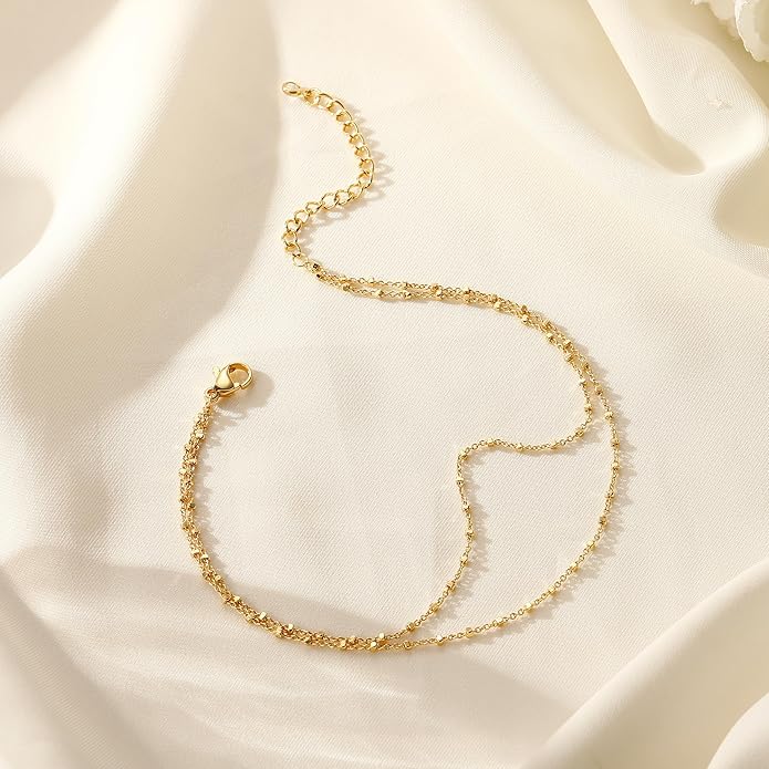 - 【Adjustable Size】: This anklet size is 8.5" with 2" extender, the chain is strong and not easy to break. Lobster clasp design, easy to put on and take off, you can adjust to any length. Our layered ankle bracelet fits most ankle size, suitable for daily wear by women, sisters, friends, etc.