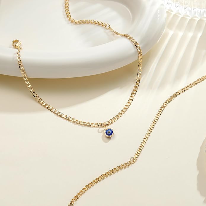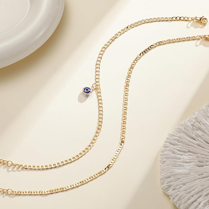 - 【Various Styles】: Layered flat mariner chain with evil eye design, classic style and versatile. It is suitable to wear together or alone, you can mix and match at will. This gold anklet is suitable for various occasions, whether it is the beach, party or other occasions, it can meet all your needs.