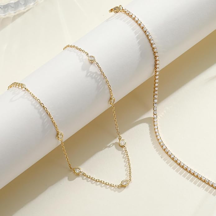- 【Various Styles】: Layered tennis chain and station chain stacking design, classic style and versatile. It is suitable to wear together or alone, you can mix and match at will. This gold anklet is suitable for various occasions, whether it is the beach, party or other occasions, it can meet all your needs.