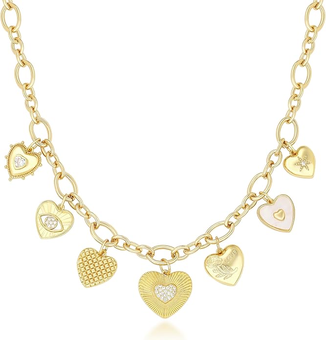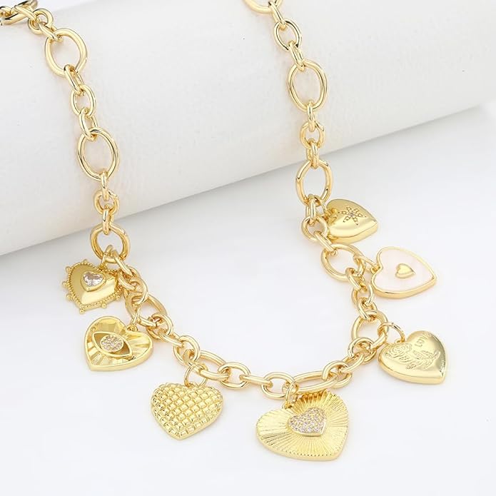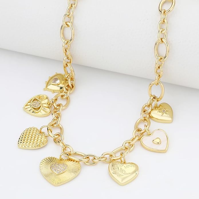 - Multi-heart Charm Design: Our exquisite gold necklace features a variety of heart-shaped pendants, each uniquely designed with different shapes and textures. This charming combination symbolizes diverse love and emotions, adding a touch of romance to your daily wear.