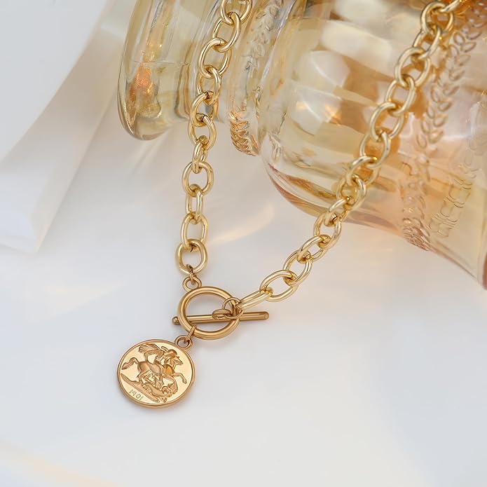 - STYLISH AND COMFY: Our Engraved Coin Pendant Necklace features a trendy 26mm design that ensures you stay fashionable while enjoying comfort, making it a timeless addition to your jewelry collection