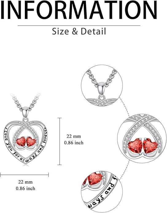 Birthstone Necklaces for Women I Love You for Always and Forever Heart Pendant Necklace Anniversary Jewelry Christmas Valentine Mothers Day Birthday Gifts for Her Wife Girlfriend