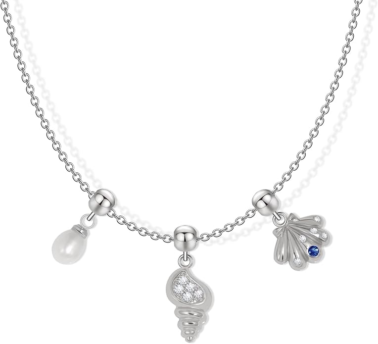 - 【Unique Ocean-Inspired Design】 Dive into summer elegance with this ocean-themed necklace featuring delicate charms of a natural freshwater pearl, shimmering conch shell, and sparkling seashell pendant. Each charm brings the ocean's beauty to your neckline — perfect for those who love beach jewelry for women or are seeking a nautical aesthetic necklace for summer vibes.