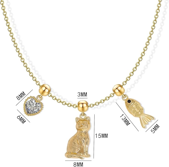 - 【Adorable Cat-Themed Design for Pet Lovers】 This cat necklace for women features a charming gold-tone kitty pendant, paired with a crystal heart and a whimsical fish charm, creating a playful yet elegant jewelry piece. Ideal for cat moms and animal lovers looking for a meaningful and stylish accessory that reflects their love for feline friends.