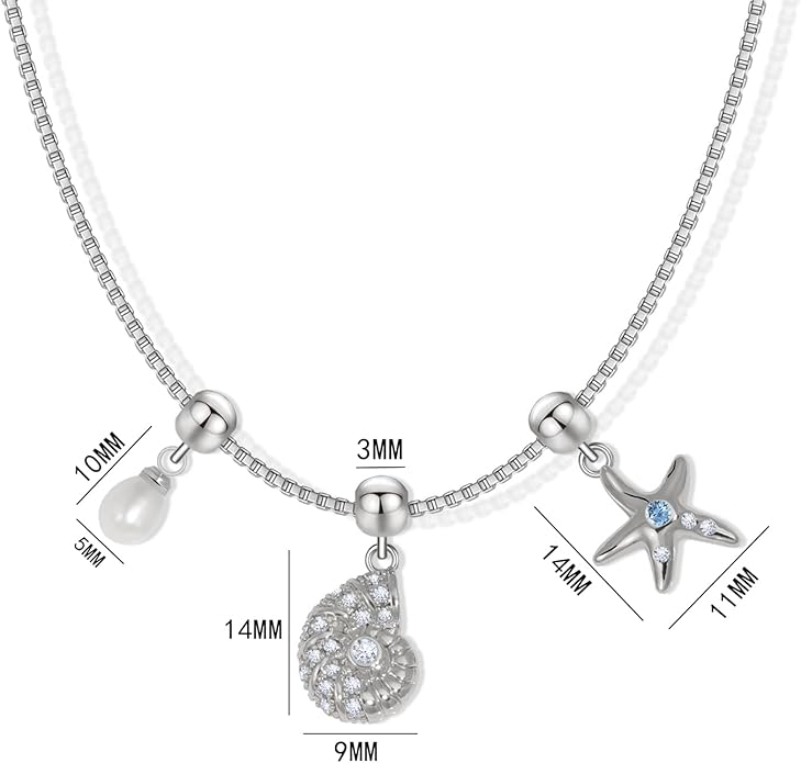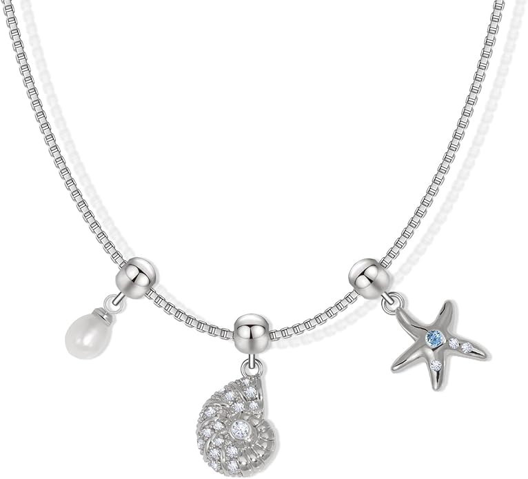 - Coastal-Inspired Ocean Necklace for Women This dainty beach necklace captures the essence of the ocean with three symbolic charms: a sparkling starfish, a pavé seashell, and a lustrous and NUTRAL freshwater pearl. Whether you're a beach lover or a sea dreamer, this elegant piece brings summer vibes to every outfit.