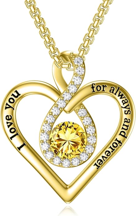 I Love You For Always and Forever Birthstone Necklace Infinity Love Heart Pendant Jewelry Christmas Valentine Mothers Day Birthday Gifts for Women Her Wife Girlfriend