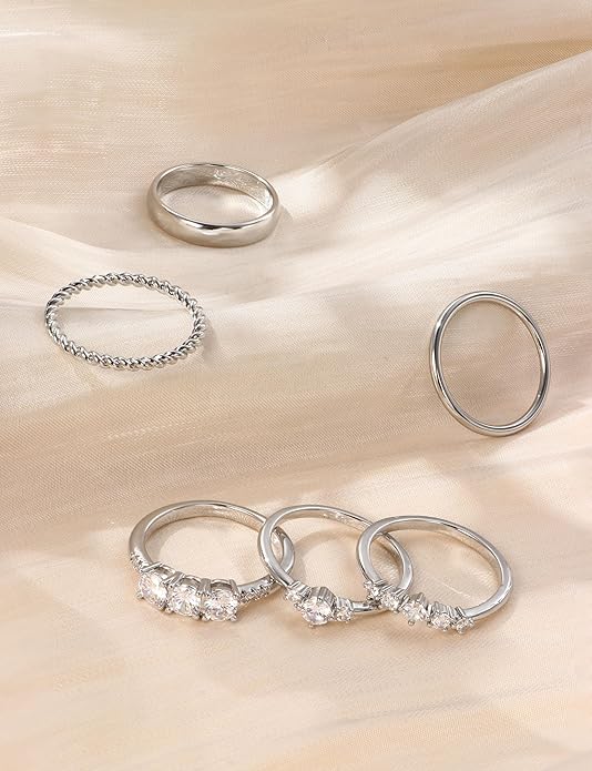 - Stackable Rings Set: These silver rings for women includes 6PCS of simple and delicate silver rings , which is rich in styles, such as cubic zirconia,twist,chunky,thin rings. Whether stacked or worn individually, these stackable rings for women will meet all your fashion needs, available in gold and silver color options.