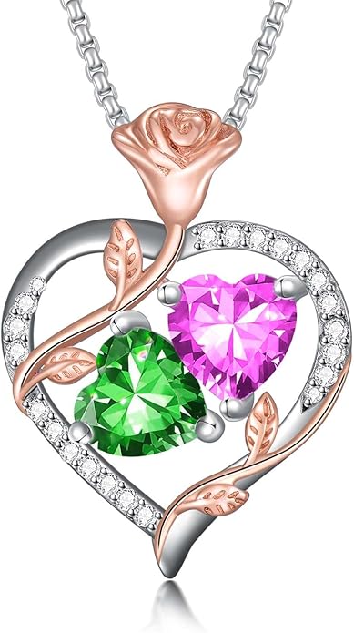 - Rose Heart Necklaces with 2 Birthstone --- This romantic and heartwarming quote serves as a poignant expression of eternal love, Great necklace gifts for wife, girlfriend, mom, grandma, daughter, etc.