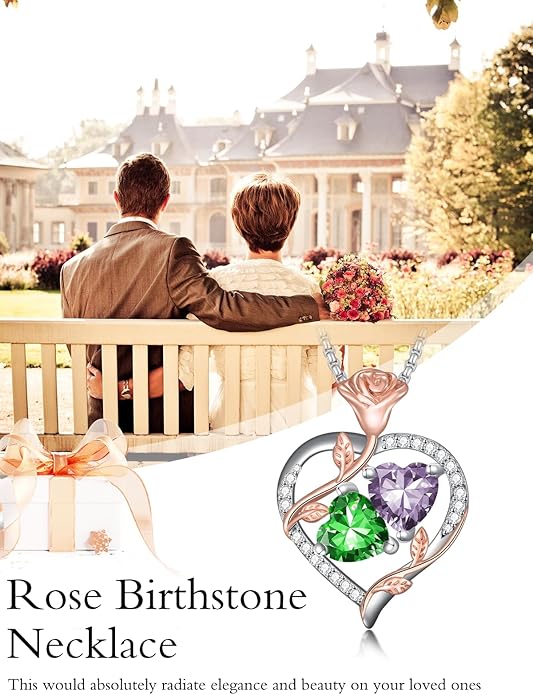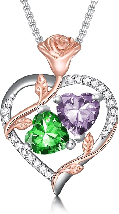 - Rose Heart Necklaces with 2 Birthstone --- This romantic and heartwarming quote serves as a poignant expression of eternal love, Great necklace gifts for wife, girlfriend, mom, grandma, daughter, etc.
