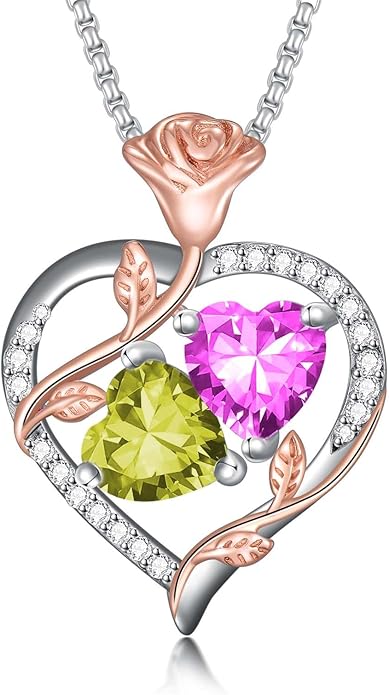 - Rose Heart Necklaces with 2 Birthstone --- This romantic and heartwarming quote serves as a poignant expression of eternal love, Great necklace gifts for wife, girlfriend, mom, grandma, daughter, etc.