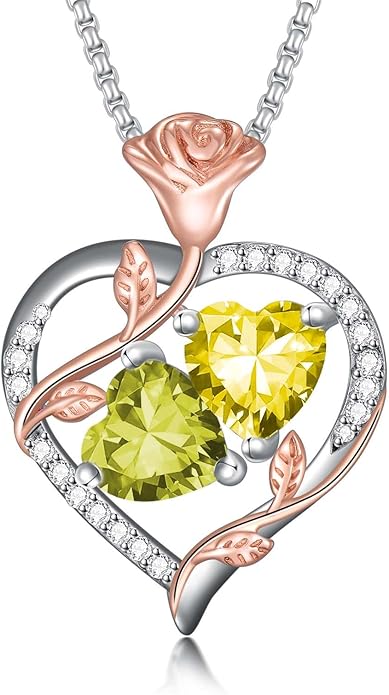 Jewelry for Her Double Heart Rose Birthstone Pendant Necklace Anniversary Jewelry Christmas Birthday Gifts for Women Wife Girlfriend