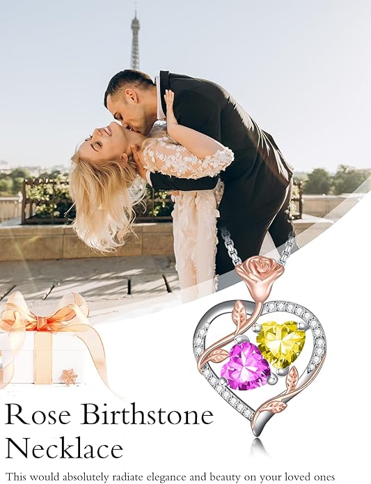 - Rose Heart Necklaces with 2 Birthstone --- This romantic and heartwarming quote serves as a poignant expression of eternal love, Great necklace gifts for wife, girlfriend, mom, grandma, daughter, etc.