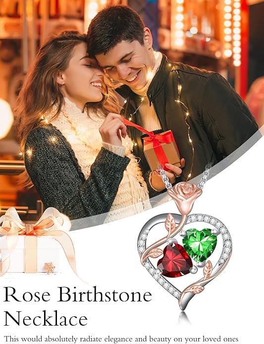 Jewelry for Her Double Heart Rose Birthstone Pendant Necklace Anniversary Jewelry Christmas Birthday Gifts for Women Wife Girlfriend