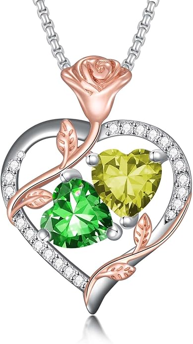 - Rose Heart Necklaces with 2 Birthstone --- This romantic and heartwarming quote serves as a poignant expression of eternal love, Great necklace gifts for wife, girlfriend, mom, grandma, daughter, etc.