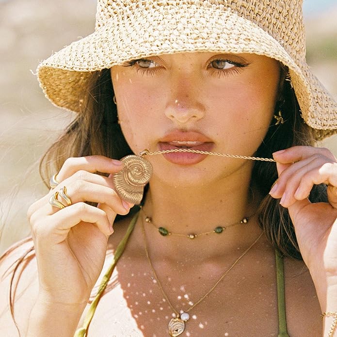 - 5.Giftable: Looking for a thoughtful gift for a beach lover or boho jewelry fan? This big gold necklace is a natural standout. Perfect for birthdays, anniversaries, or holidays, it’s a beautiful large pendant necklace that makes a memorable gift for anyone who appreciates marine necklaces or coastal fashion.
