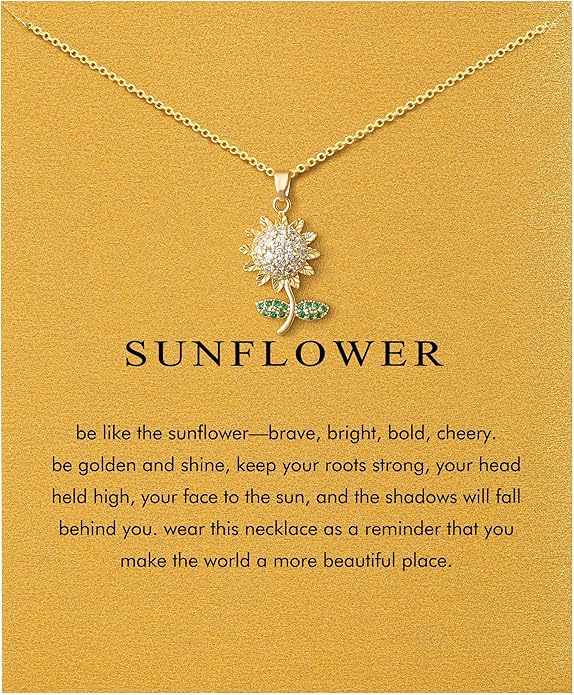 - 【Sunflower Necklaces for Women】- "Be like the sunflower: brave, bright, bold." This pendant isn’t just golden – it’s liquid sunlight forged to remind you: "Keep your face to the sun, and shadows fall behind."