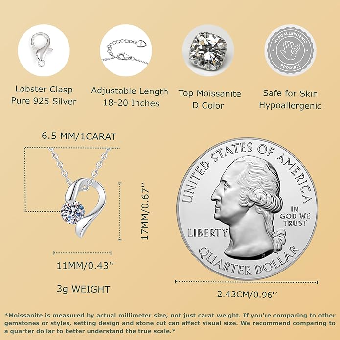 - 💖 Symbol of Timeless Love: Crafted in a graceful heart-shaped design, these moissanite pendant necklaces expresses eternal love and deep connection. Perfect love heart necklaces for women, ideal for anniversaries, birthdays, or just because. Make her heart smile with this dainty moissanite jewelry for girlfriend or wife.