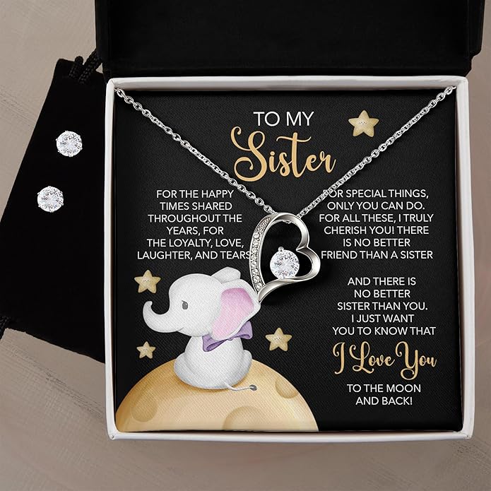 (USA-Assembled) To Sister Gift - Heart Necklace and Earring Set for Women Her Jewelry - Birthday Christmas Graduation College Female Black Box (id174)